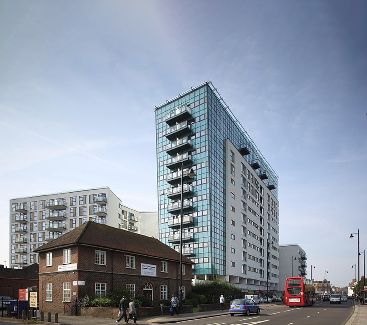 A new residential development in Enfield town centre to create 191 new apartments with 151 secure parking spaces. The scheme involves the conversion and extension of an existing office building and two new residential blocks adjacent to Enfield train station.