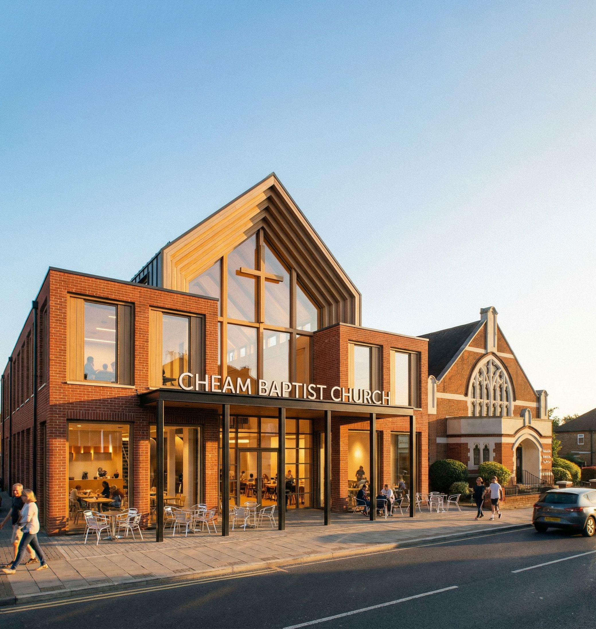 This exciting project is the redevelopment of the existing Baptist Church in Cheam town centre to double the capacity of the church and provide additional community facilities such as a street front cafe, function rooms, a nursery school and flexible function rooms.