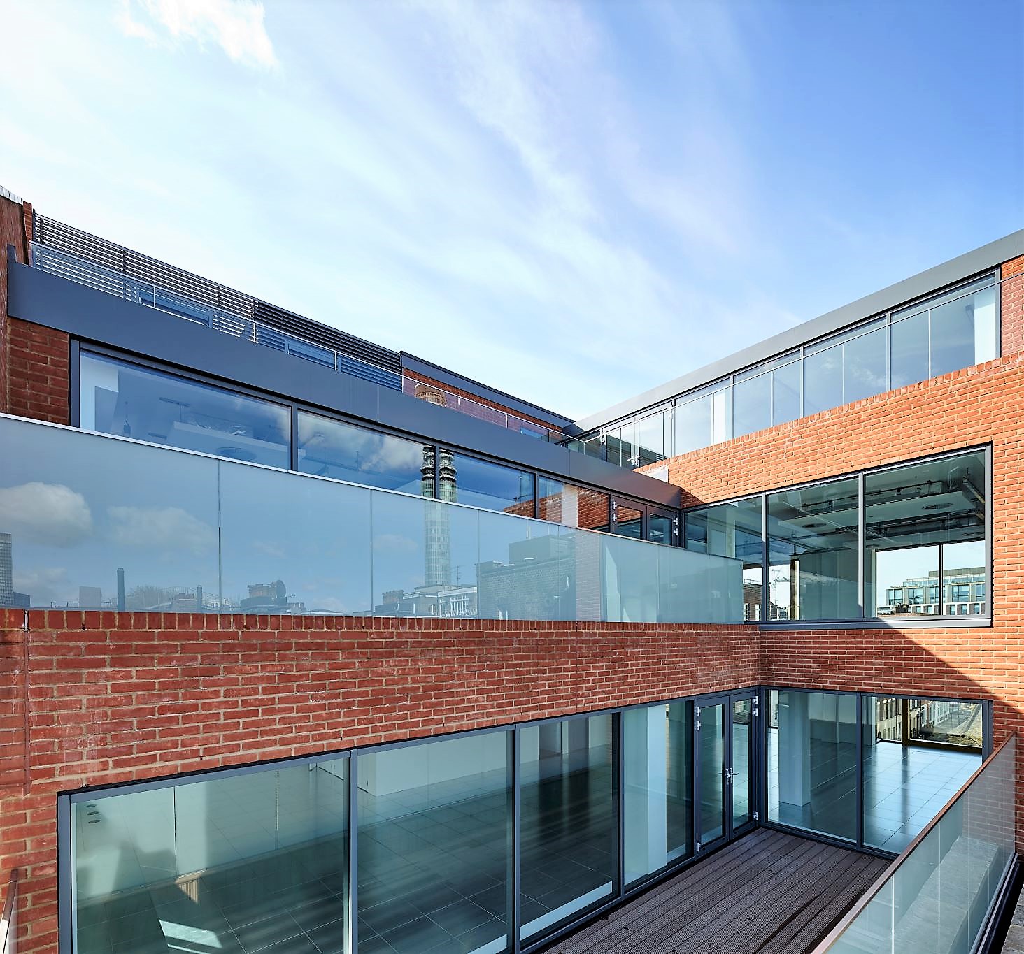 Our design incorporated the existing building features such as the original cast iron steel beams and columns and exposed brickwork along with new Crittal glass screens, a double sized reception space, raised floors, and suspended ceilings with designer lighting for both Cat 'A' and Cat'B' office finishes. The refurbishment was completed in 2021.