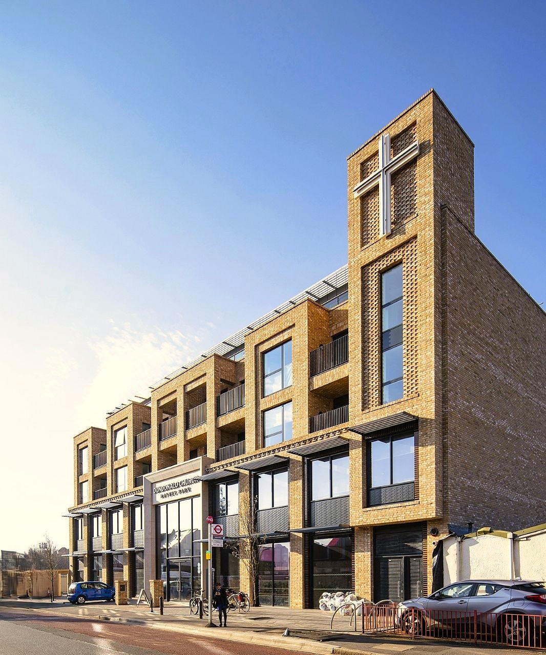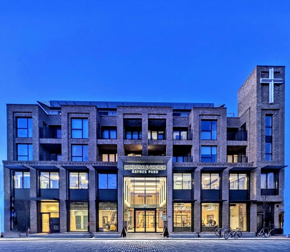 Dundonald Church is a new build mixed use community scheme that includes 18 apartments which are seamlessly integrated into a contemporary church building in south west London. The design focuses on creating a modern church facility that will be a social hub for the local community.