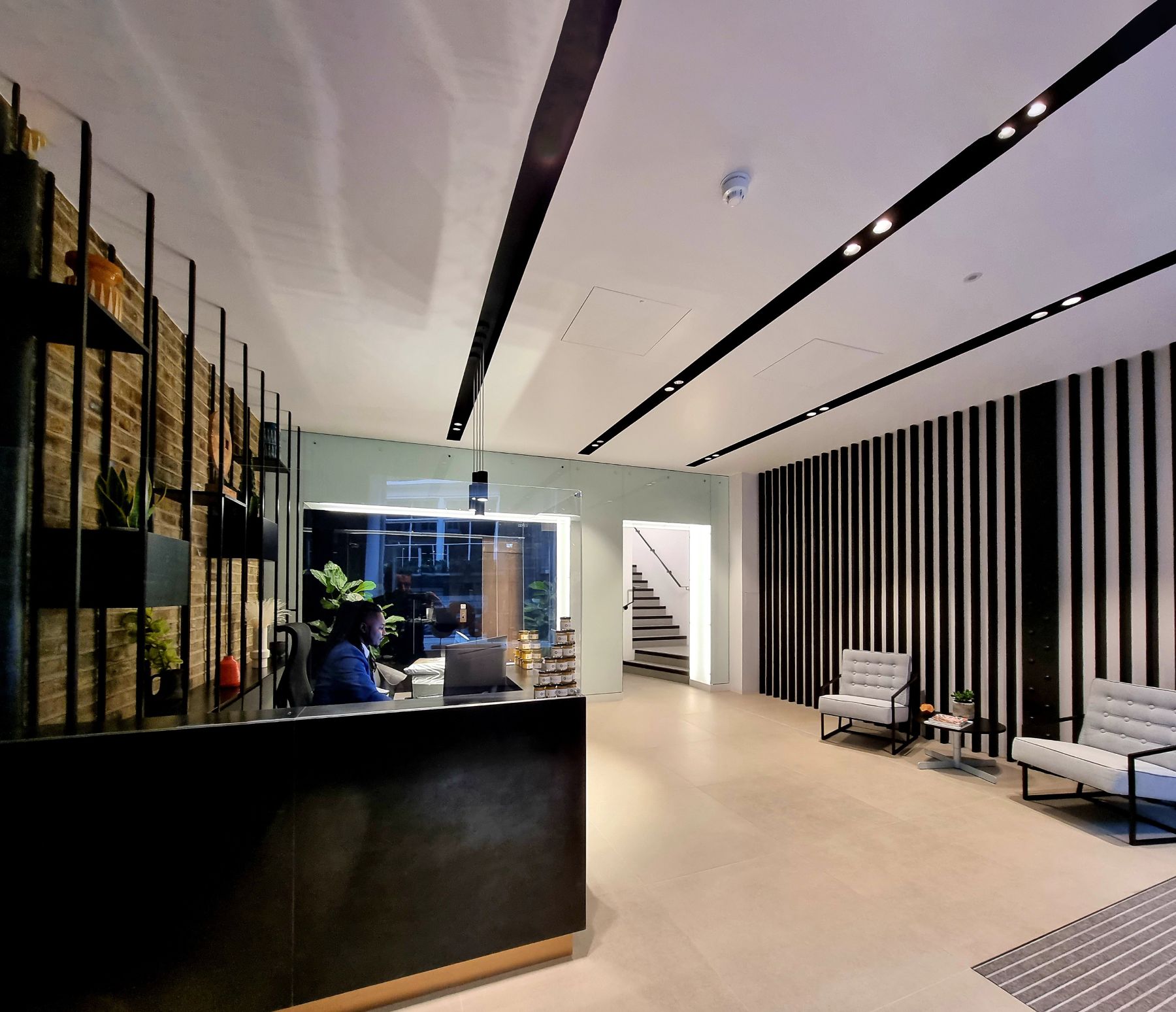 Our design incorporated the existing building features such as the original cast iron steel beams and columns and exposed brickwork along with new Crittal glass screens, a double sized reception space, raised floors, and suspended ceilings with designer lighting for both Cat 'A' and Cat'B' office finishes. The refurbishment was completed in 2021.