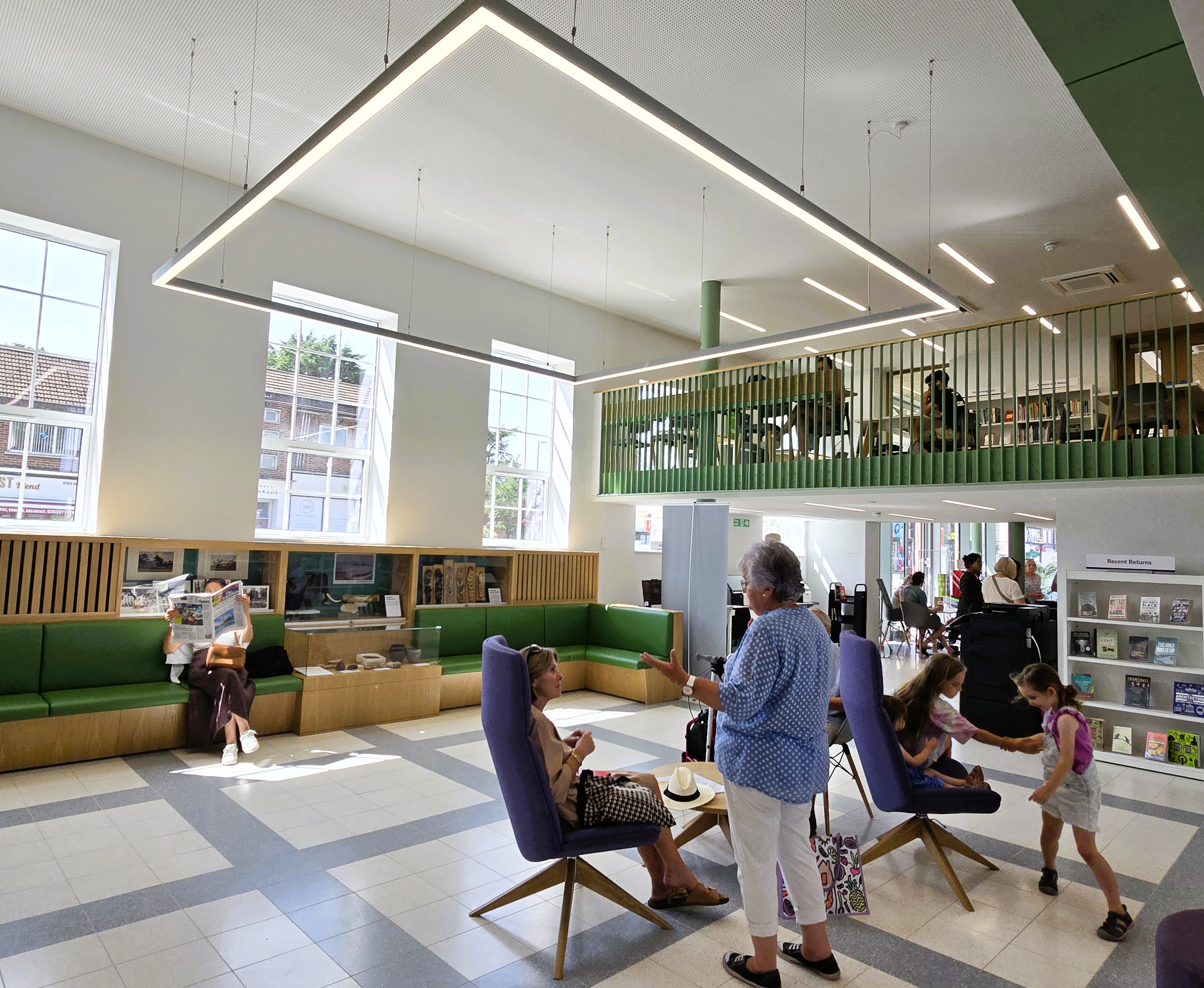 This project is the innovative redevelopment of West Wickham Library into a modern state of the art community facility which also included the construction of 26 new build affordable flats in the old library car park. The new extended library provides access to books and information, and also provide a variety of IT resources, with dedicated spaces for public PCs and laptop stations. Above all, it is a community space: the library extension provides additional community services with a new event gallery, a new cafe, a maker space, a business lounge for co-working, a community space for hire and a new outdoor classroom.